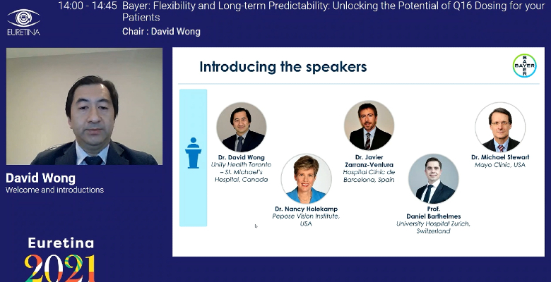 O terceiro simpósio patrocinado pela Bayer no decorrer do EURETINA 2021 teve lugar no dia 11 de setembro e contou com moderação do Dr. David Wong, da Unity Health Toronto – St. Michael’s Hospital, Canadá. A sessão pretendeu demonstrar a importância do tratamento em doentes com degenerescência macular relacionada com a idade, neovascular (DMIn) e como um regime de tratamento treat and extend (T&E) pode alcançar e manter ganhos de visão significativos e ao mesmo tempo reduzir a carga de tratamento.